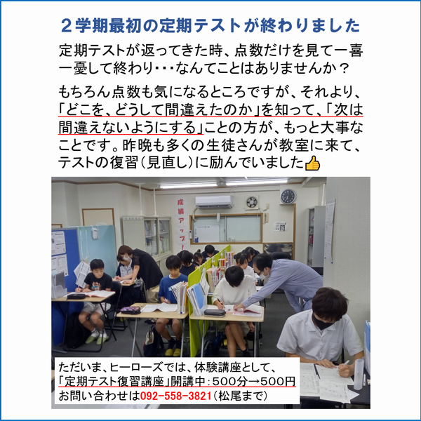 昨晩も多くの生徒さんが教室に来て、テストの復習(見直し)に励んでいました!