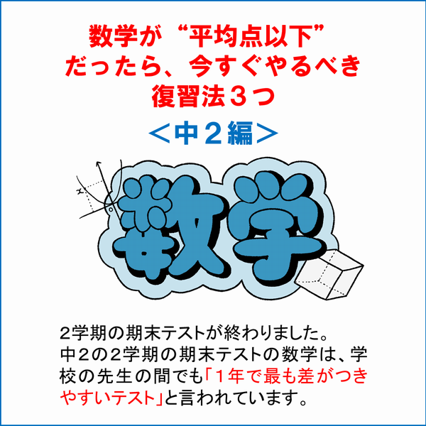 中2の2学期の期末テストの数学は、学校の先生の間でも「1年で最も差がつきやすいテスト」と言われています。