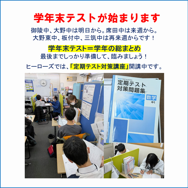 ヒーローズでは、「定期テスト対策講座」開講中です。
