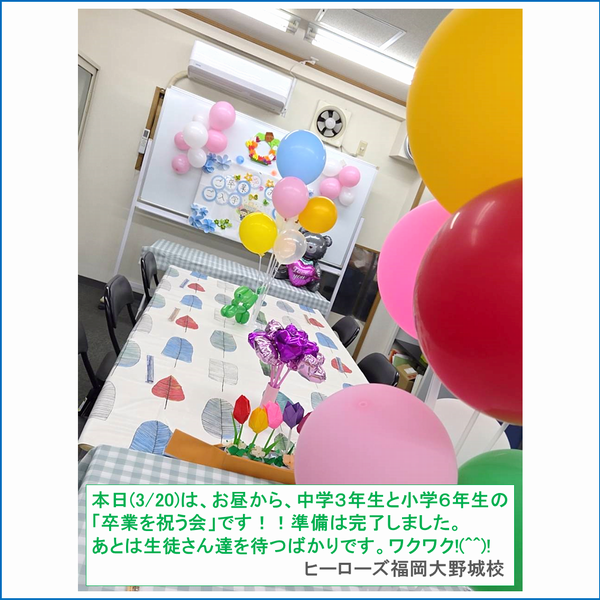 本日(3/20)は、お昼から、中学3年生と小学6年生の「卒業を祝う会」です!!