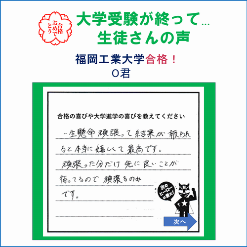福岡工業大学合格!O君