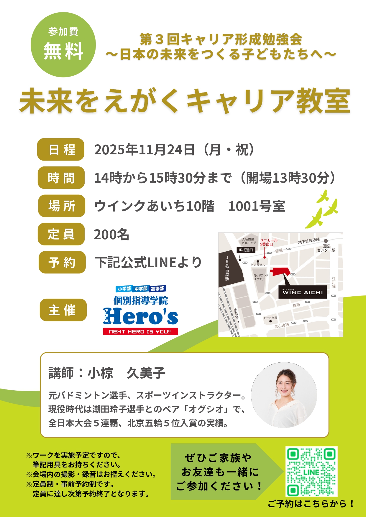 こちらでヒーローズ主宰の「キャリア形成勉強会」のお知らせをいたします!