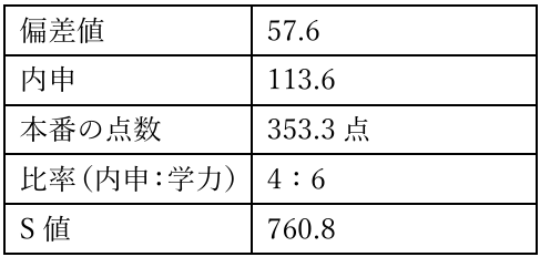 この内申をS値に当てはめて計算すると、内申のS値は296点