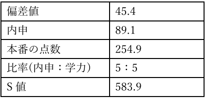 この内申をS値に当てはめて計算すると、内申のS値は352点