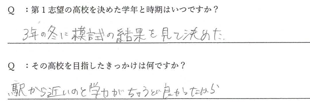 通いやすさや学力のバランスなど、現実的な視点で納得して選べたことが、その後の安定した努力につながりました。